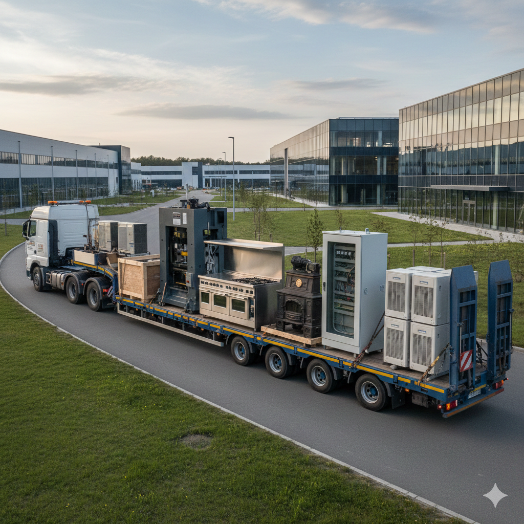 Vállaljuk ipari gépek, konyhatechnológiai berendezések, kapcsolószekrények, kandallók és hőszivattyúk szakszerű, biztonságos szállítását. A különböző méretű, súlyú és érzékenységű eszközök mozgatását megfelelő eszközparkkal, tapasztalt szakemberekkel végezzük, kiemelt figyelmet fordítva a rögzítésre és a sérülésmentes célba juttatásra. Legyen szó üzemi, kereskedelmi vagy lakossági megrendelésről, a szállítás teljes folyamatát megbízhatóan és pontosan bonyolítjuk le, hogy a berendezések azonnal használatra vagy telepítésre készen érkezzenek meg.